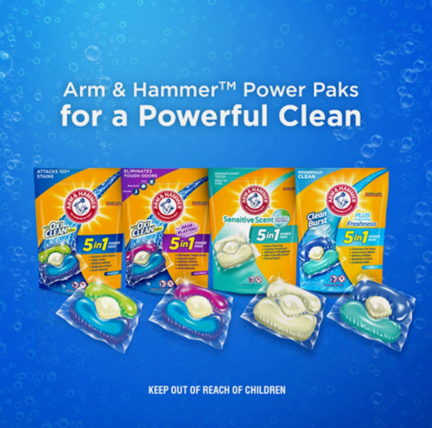 • DEEP CLEANING ARM & HAMMER DETERGENT IS POWERED BY OXICLEAN: America’s #1 stain fighter Additive Brand* combines with our trusted laundry detergent and Odor Blasters in a single Power Pak formulated to get out tough stains and odors(*based on units sold)