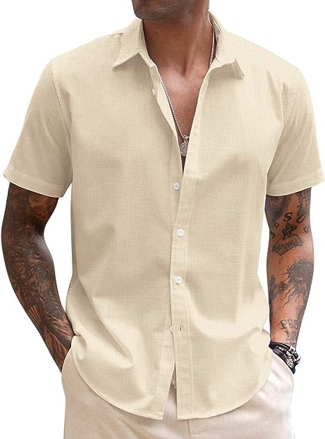 COOFANDY Men's Linen Casual Short Sleeve Shirts Button Down Summer Beach Shirt