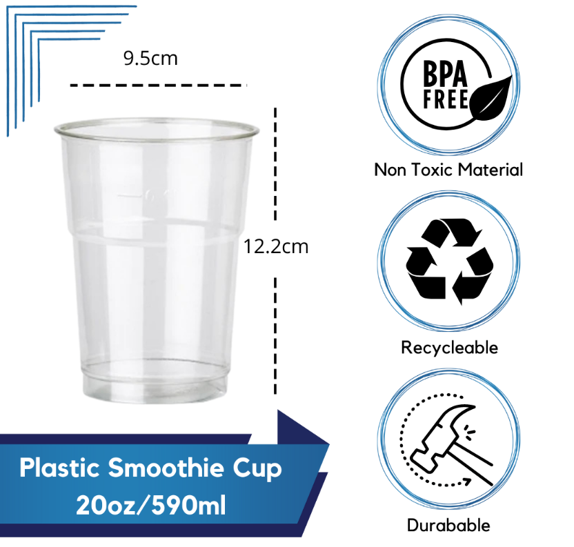 • 20oz (590cc) Clear Smoothie Cups and Domed or Flat Lids