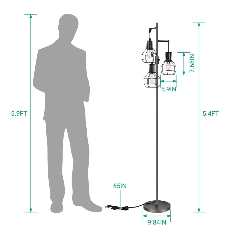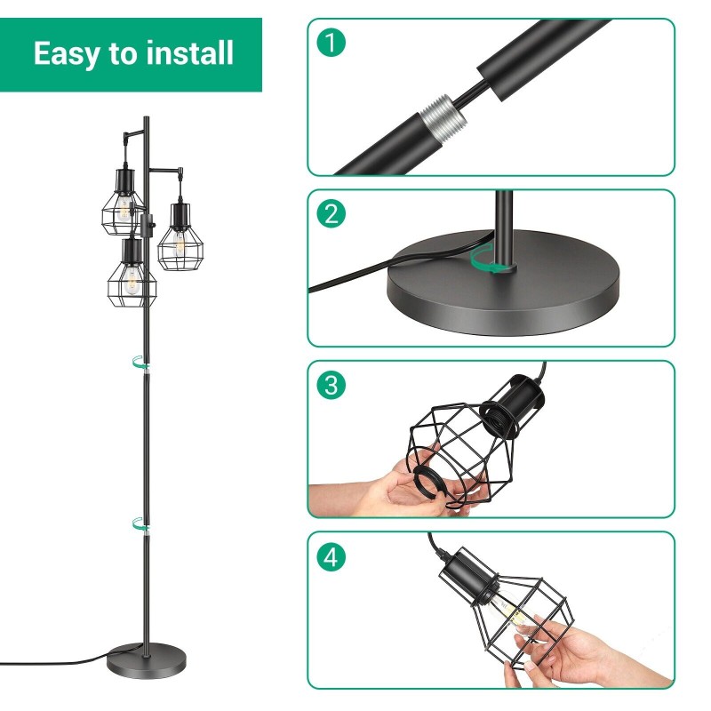 EDISHINE Dimmable Tree Floor Lamp Industrial Standing Lamp for Living Room