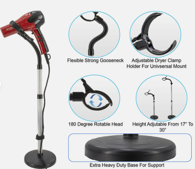 Hands Free Hair Dryer Stand Holder Blow Dryer Mount Hands Free Drying - Portable