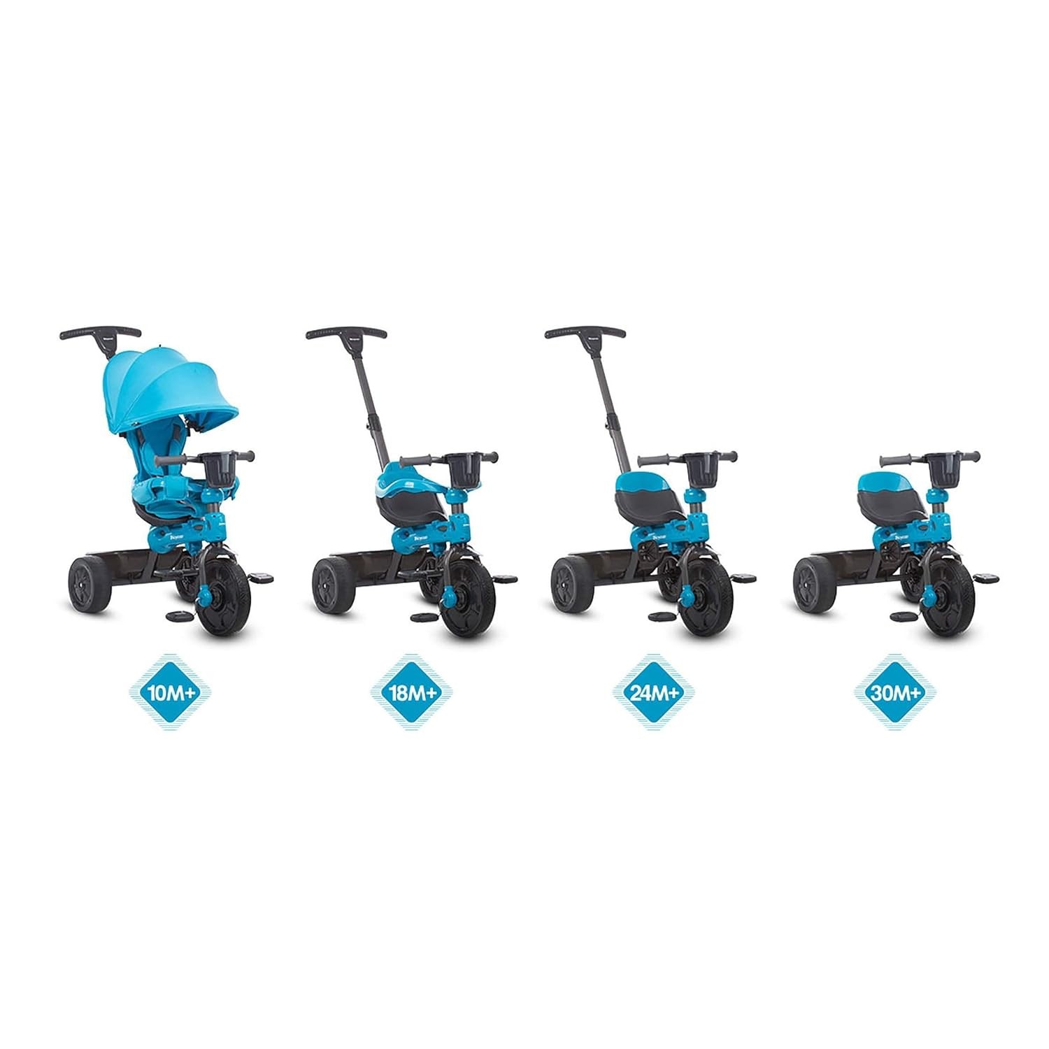• 4 ADJUSTABLE STAGES allows the Tricycoo toddler tricycle to adapt as your child grows