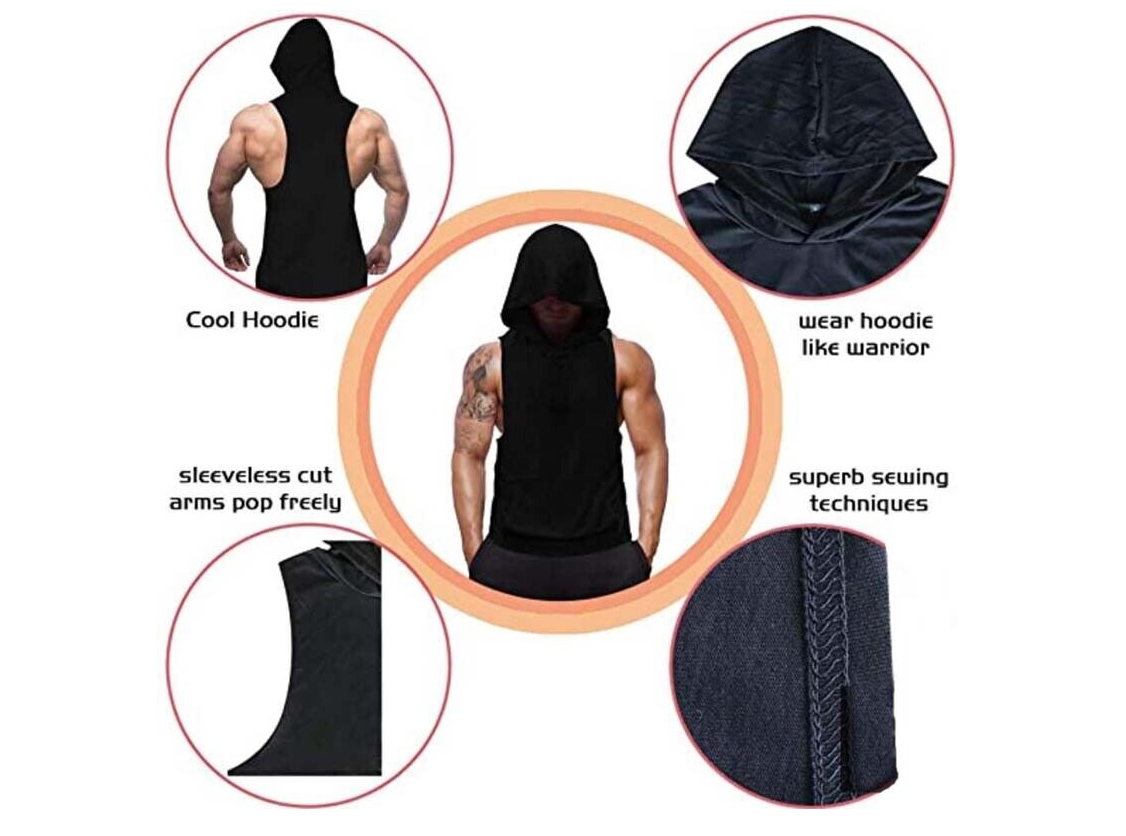 Men Workout Hooded Tank Tops Bodybuilding Muscle T Shirt Sleeveless Gym Hoodies