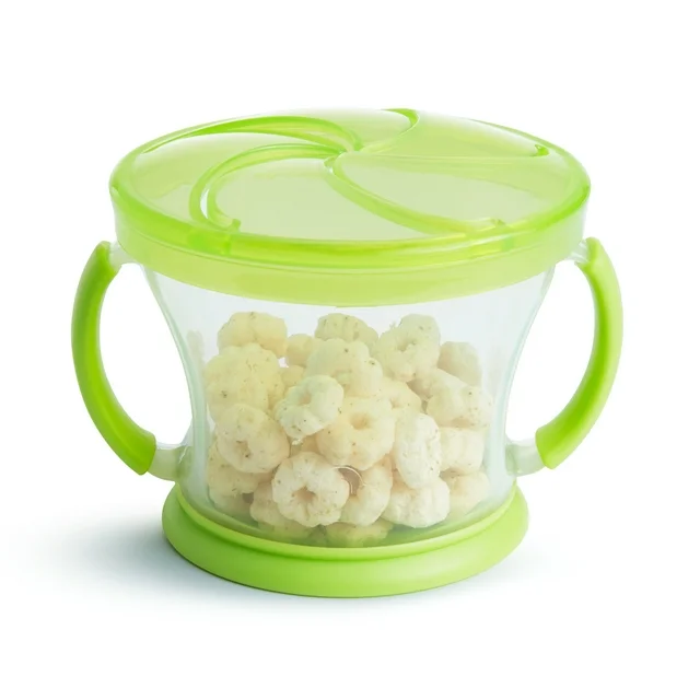 Sometimes it seems all you have to do is follow a trail of crumbs to find your little one. Munchkin’s best-selling Snack Catcher® to the rescue! This portable snack bowl allows independent toddlers to self-feed with a bit more dexterity and a lot less mess. Kids love accessing snacks all by themselves through the soft, flexible flaps, and moms love that those same flaps help prevent food spills all over the house and car. Each spill-proof Snack Catcher® cup has two handles designed for even the littlest hands to grasp easily, and a no-slip rubber bottom to keep it in place on the dinner table, in the high chair, or during lunchtime at school. Snack Catcher® food containers are a must-have for toddlers on the move. And because snacks come out only when they want them to, snack time no longer means food everywhere except your child’s mouth. Win-win for all!