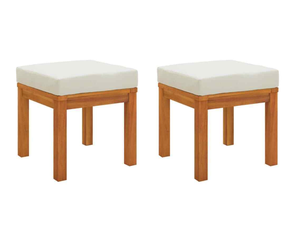 Patio Stools with Cushions 2 pcs 15.7"x15.7"x16.5" Solid Wood Acacia