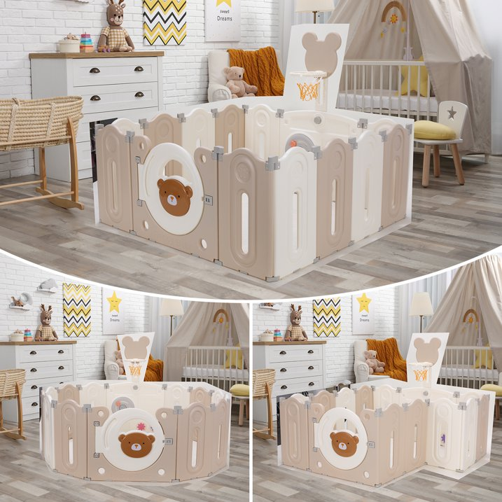 【Parents' Helper】The bear safety playpen not only provides a space for your baby to grow and develop independently but also gives parents some well-deserved "me" time. You can place your baby inside the playpen with foam balls and toys, allowing them to play while you attend to your daily tasks.