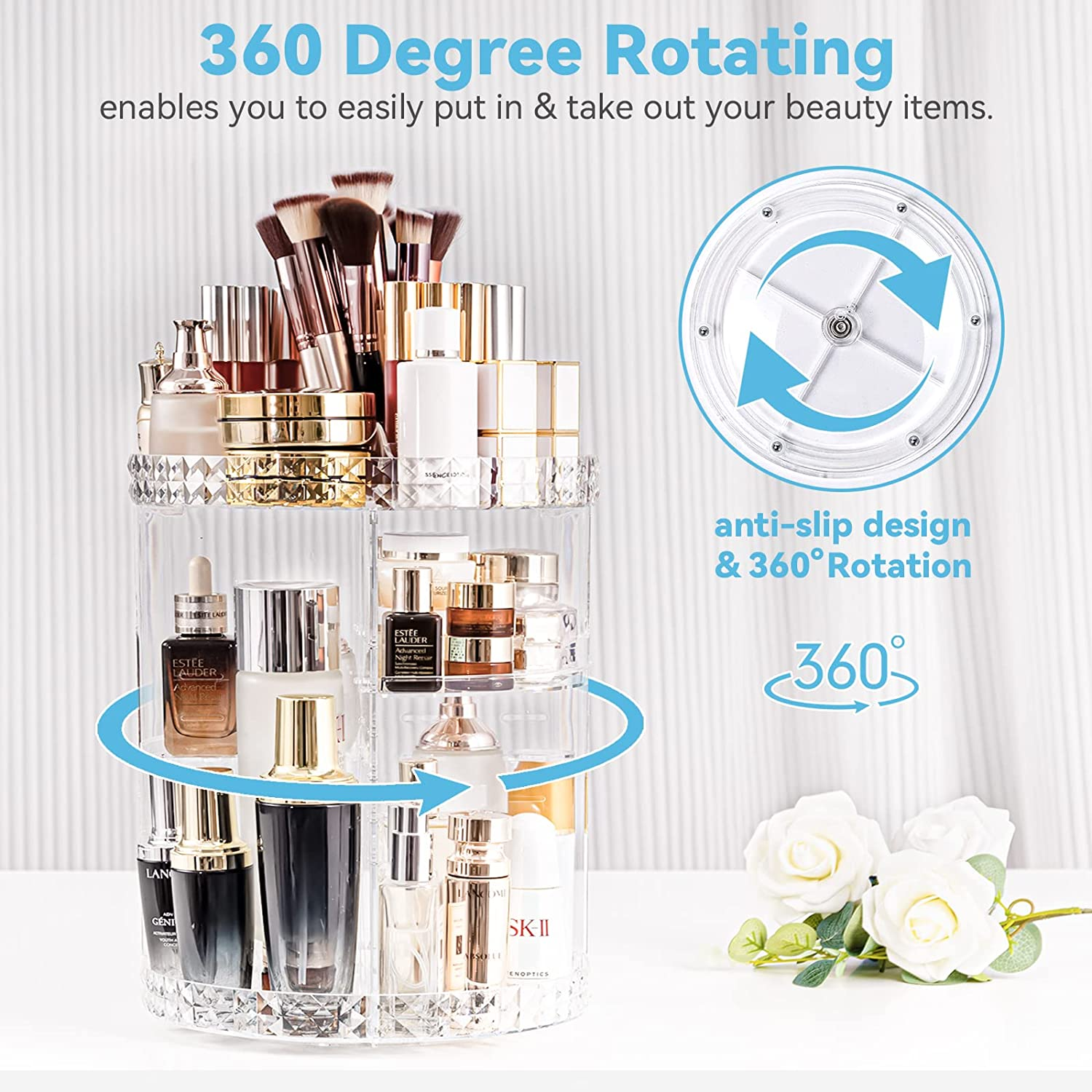 Rotating Makeup Organizer Spinning Makeup Organizer for Vanity, 360 Rotation wit
