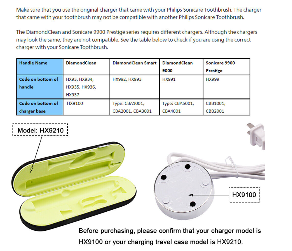 Please note: This listing is for Philips DiamondClean Sonic eletric toothbrush without retail package , never used. Handle only, without head&charger.