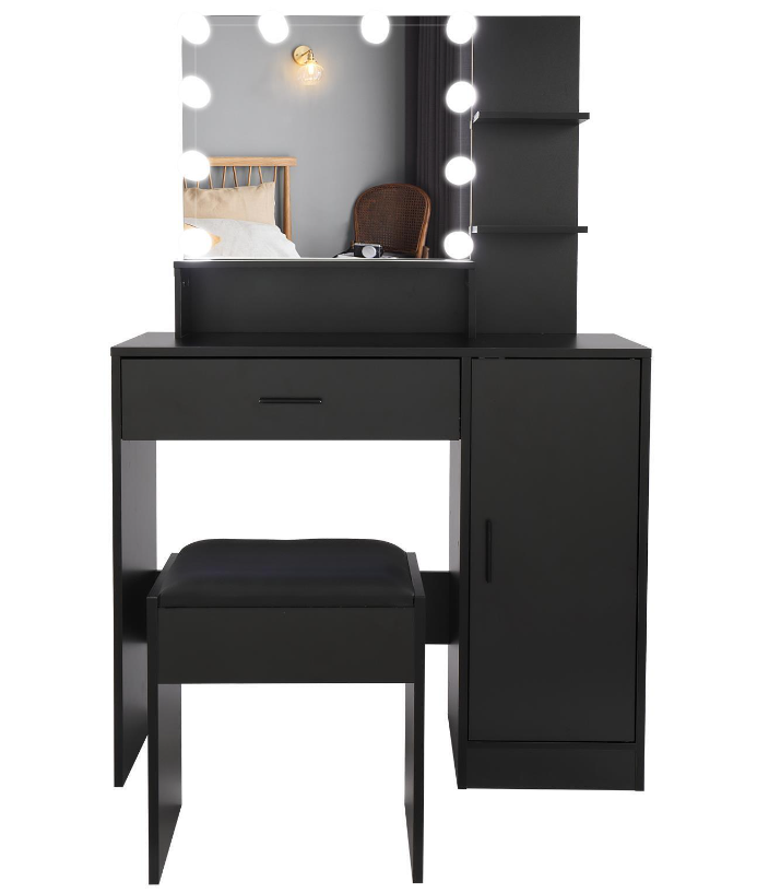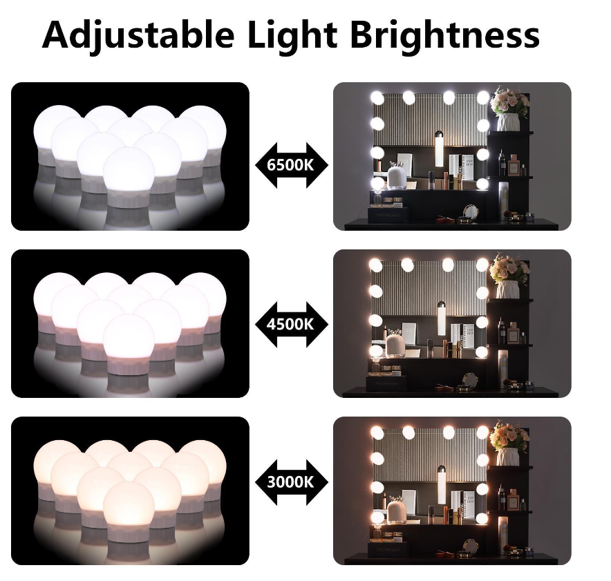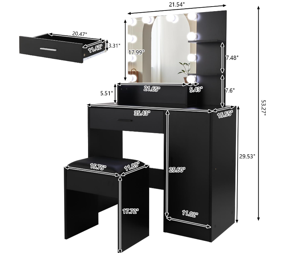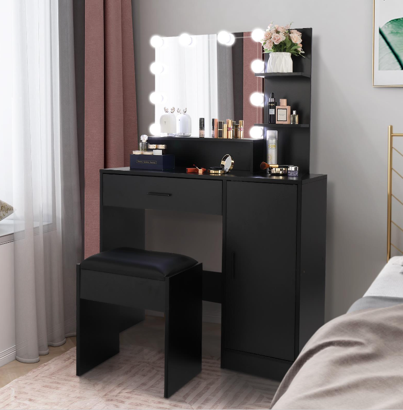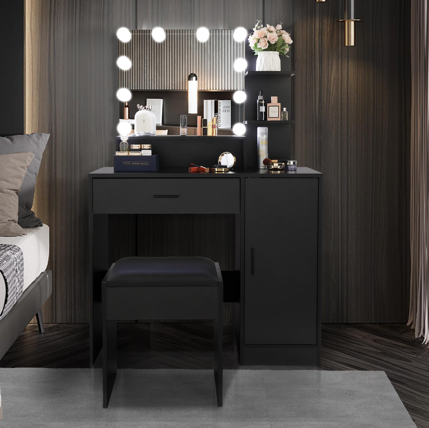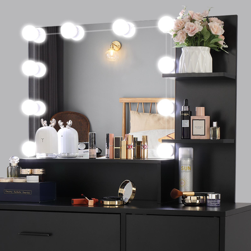 Vanity Set 10 Lighted Mirror Makeup Dressing Table W/ Dresser Cabinet for Women