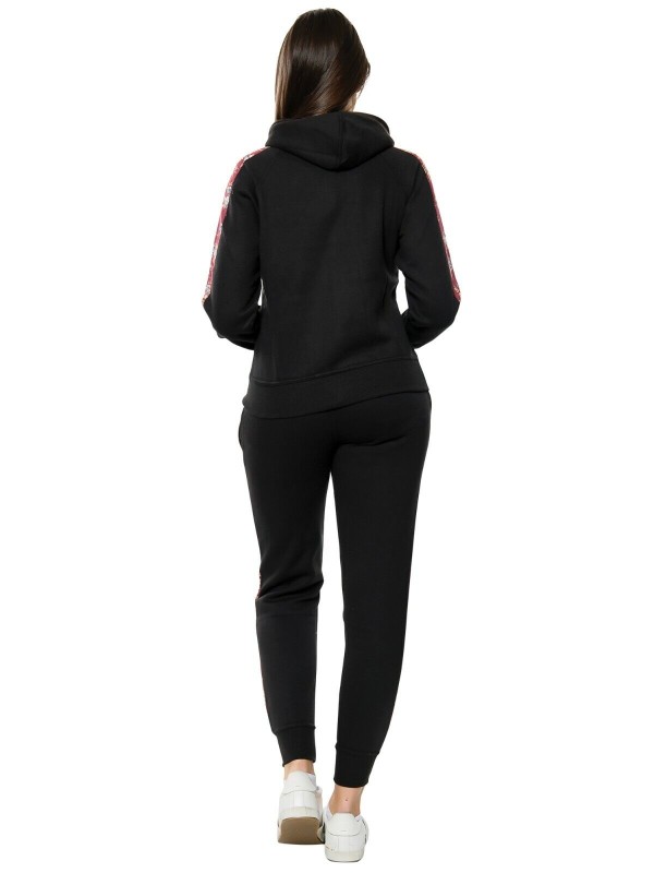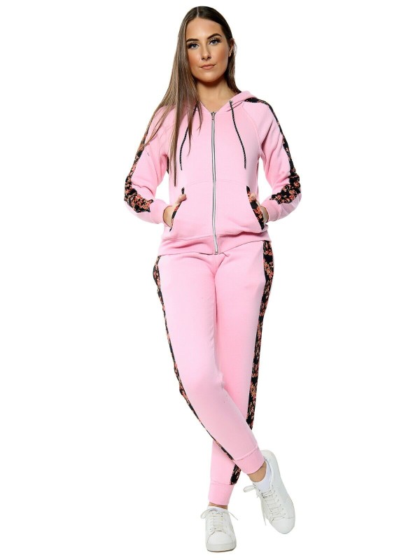 Fleece, Hooded, Floral Side Panel, Windproof, Elastic Waist, Comfort, Sports, Drawstring, Stretch, Thermal, Sport Suit, Moisture Wicking, Side Stripe, Pockets, Lightweight, Lounge Suit, Zipper, Jogging Pants